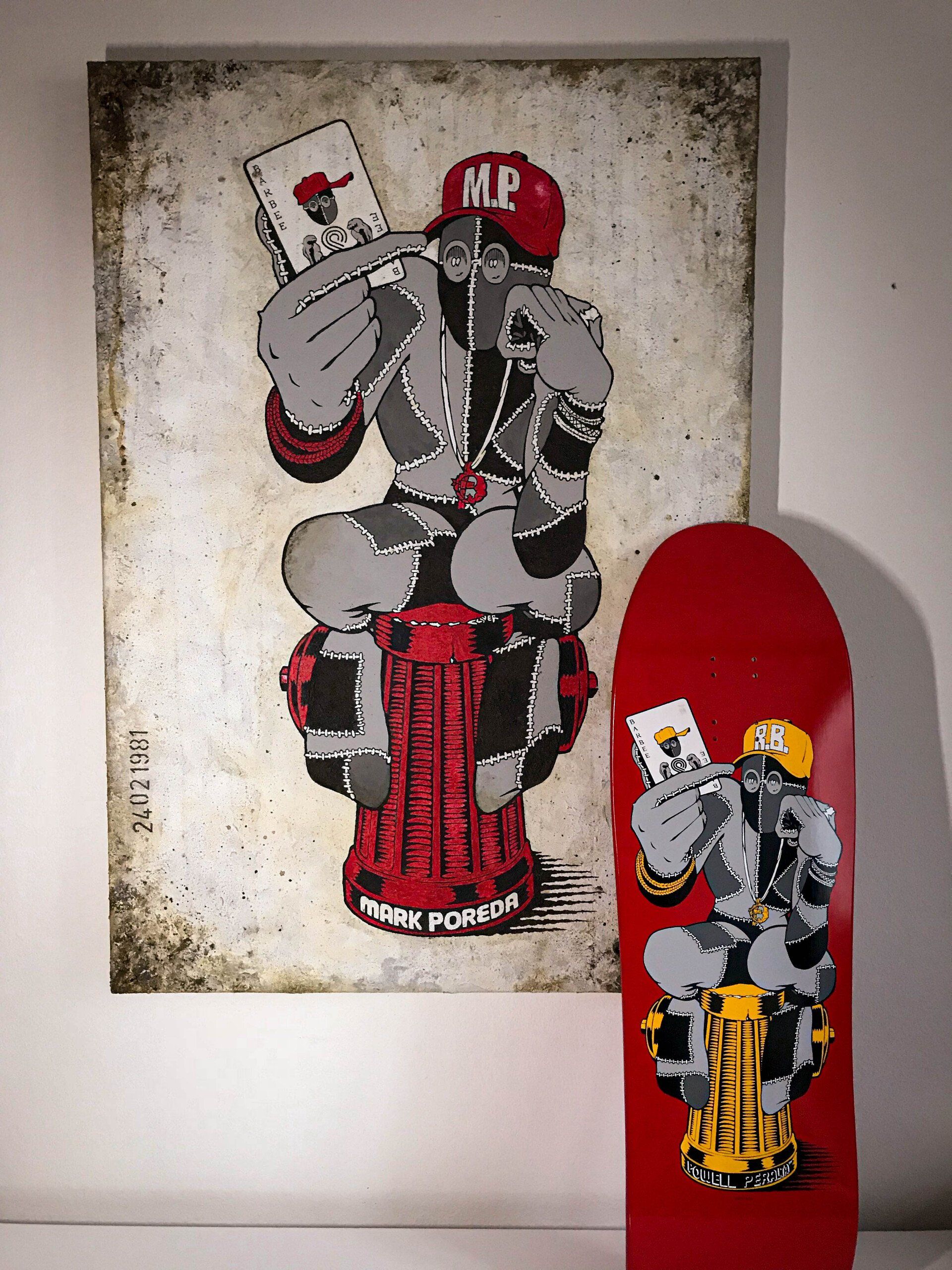Original artwork by Sean Cliver in 1990 for the Ray Barbee "Hydrant" skateboard deck by Powell Peralta.
